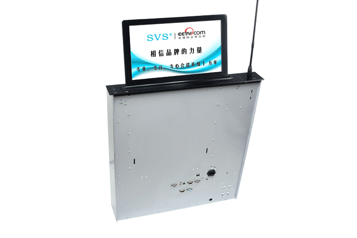 会场产品推荐:带话筒液晶屏升降器 SV-LCD17(TL)(点击了解更多)该产品为超薄液晶屏与话筒升降一体机,采用结构与屏体、话筒一体式设计,整机大部分采用铝合金材料,结合一次性模具成型的金属外壳,美观精致。产品动力采用直角叠加式齿轮与齿条啮合传递和同步轮同步带传动,结合直线轴承导向,完成精准运动。产品标配内嵌式17.3英寸全高清16:9液晶显示屏, 选配触摸板,支持10点触摸,即插即用。产品还搭配高级会议系统单元,产品支持单机或者会议系统组网使用。