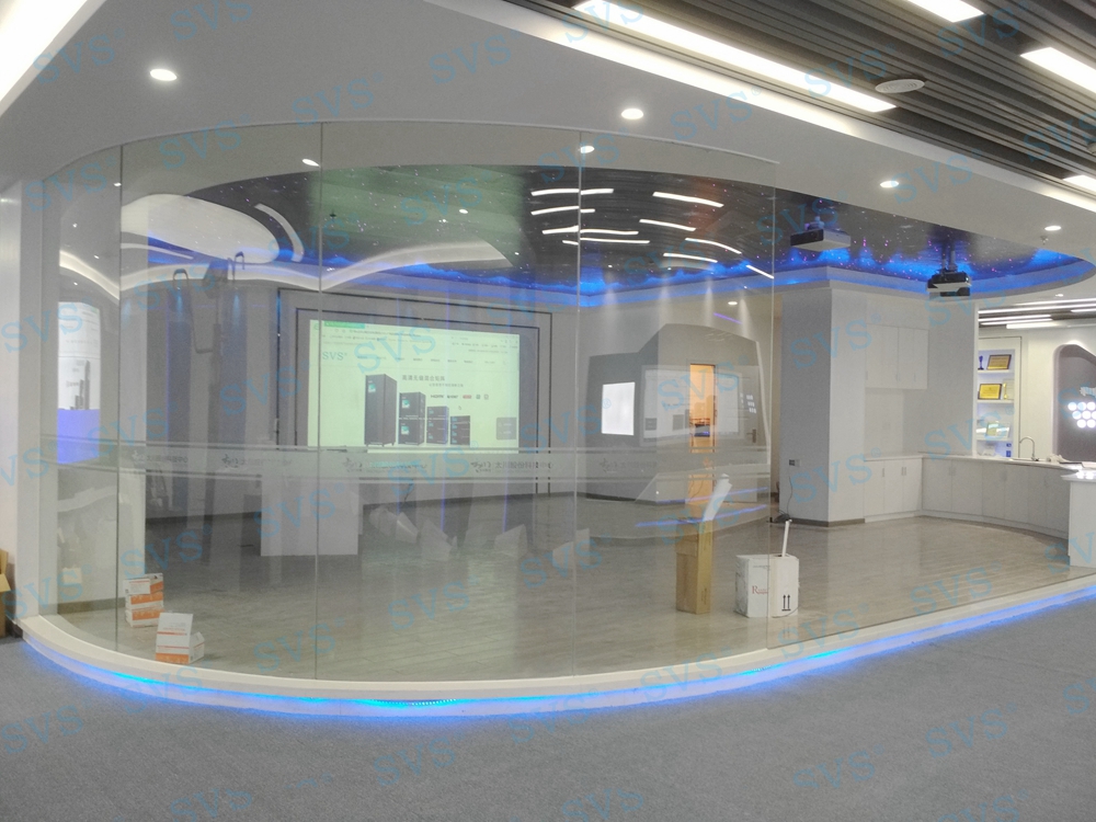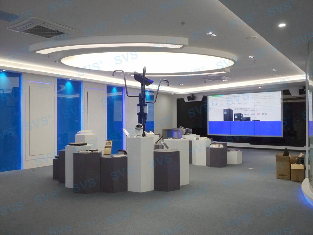 ,此次SVS为某科技公司打造一个企业文化及产品展厅,针对会场的屏幕播放系统、环境管理系统、展示发言及扩声系统等几大系统,做好综合管理,最后通过触摸屏实现最后的人机交互,客户只需轻松点击即可通过定制的控制系统轻松实现整体控制。