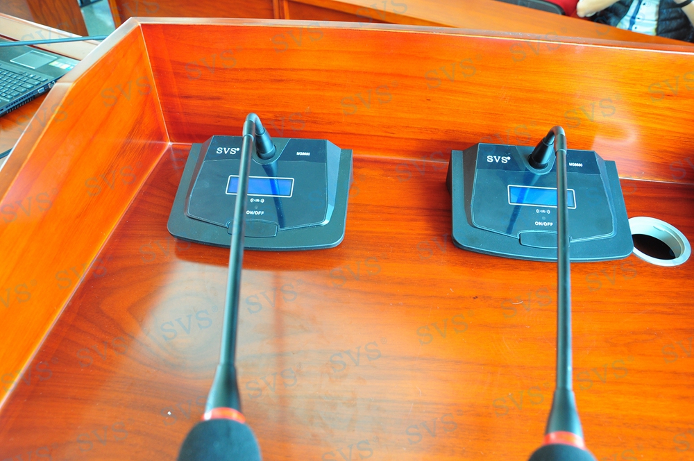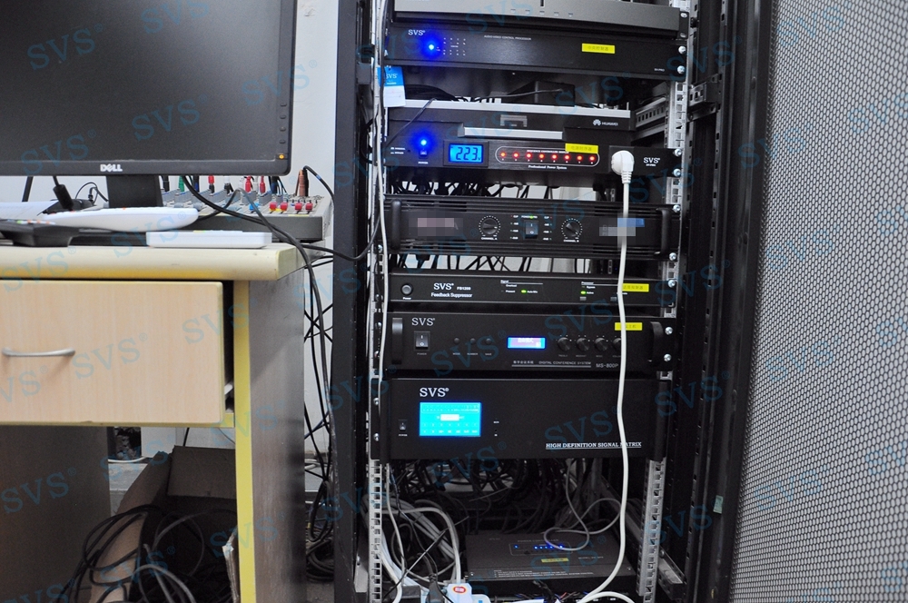 ,SVS迅控为某市司法局打造一个数字多功能厅,会场可一次性容纳近60人进行会议,会场可可视频会议室、多方通话会议室、新闻发布中心、培训中心、报告厅等多种用途使用,为了方便多种用途,且打造高品质、高保真的会议效果,特为会场配置无线和有线相互搭配的双鹅颈发言系统,配合无缝高清混合矩阵,综合智能化管理会场的输入输出信号,让远程会议轻松实现。