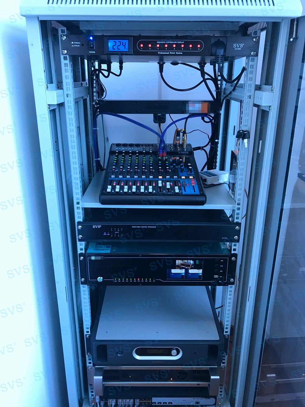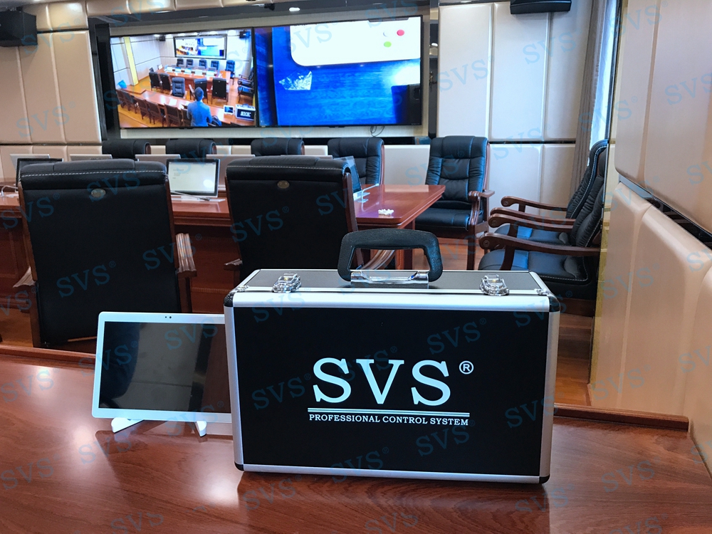 SVS为某法院打造一个视讯会议室,会场可同时容纳30人进行视讯会议,本地和异地的视讯同时发布及转播,SVS根据客户需要定制专用触摸屏控制系统,通过触摸屏交互系统轻松实现会议模式及信号切换控制。