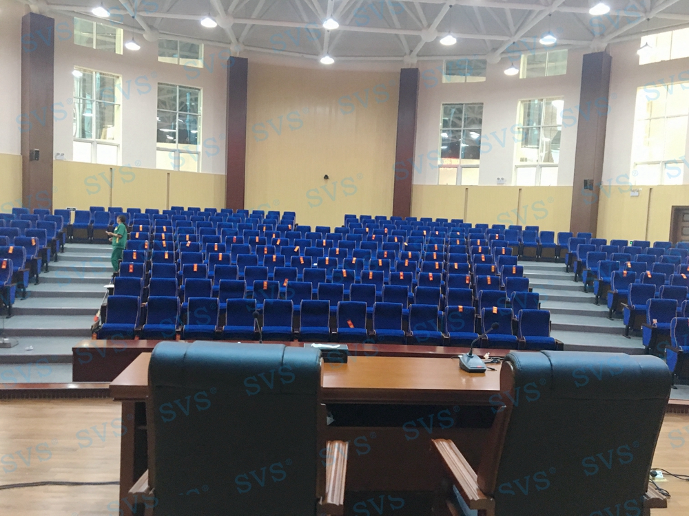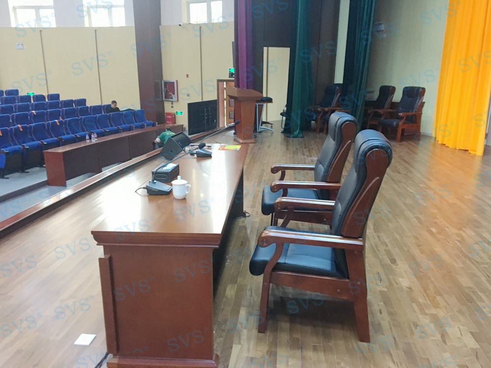 ,此次SVS迅控为某党校打造综合数字会议项目,此项目包括一个大型多功能厅报告厅、一个数字视频会议厅,迅控根据不同会场的场地面积及结构、使用用途为两个会场配置完全不同的两套数字会议系统。