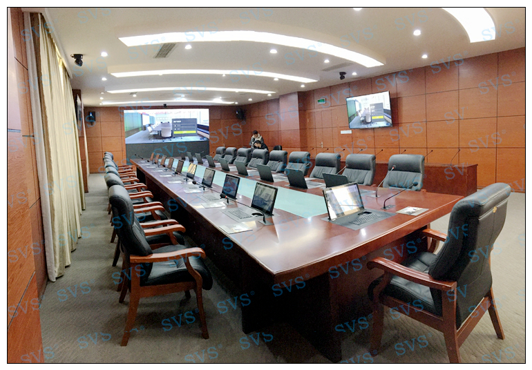 此次SVS为院方打造一个多功能无纸化视讯会议中心,会场采用全无纸化办公模式,配置1+1+1模式,轻松实现无纸化会议办公。