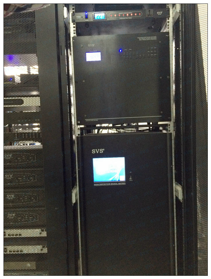 ,针对指挥中心显示信号的控制和管理,要求设备能满足大量信号输入输出路数、信号输入输出源多样化、信号切换稳定快捷等特性,此次SVS迅控为客户选择了高清无缝混合矩阵(96路)---D3088,这款矩阵是一款高性能的视音频信号专业切换和传输设备,采用标准工业机架式设计,支持HDMI、SDI、HDBaseT、光纤等各种不同类型的视音频输入/输出板卡,最高支持4K分辨率,提供完整的视音频信号无缝切换及传输,支持接口输入,输出大于等于4路,小于等于96路;