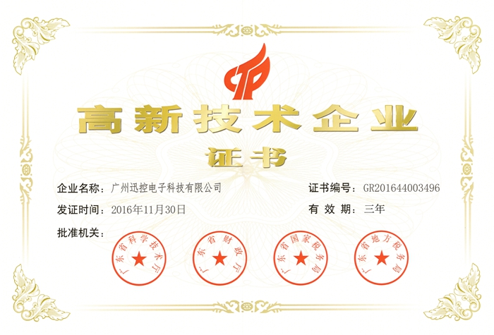 ,热烈庆祝广州迅控电子科技有限公司通过国家高新技术企业认定旗下产品获得三项高新技术产品认定