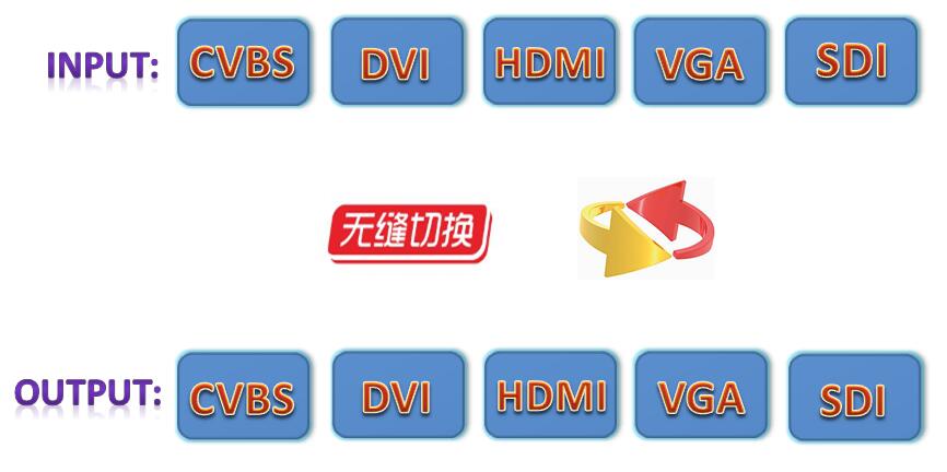 近年来随着各类视频信号的飞速发展,以前传统的CVBS、VGA信号已无法满足人们的视觉需求,但出于利旧或视频厂商设备更新不同步等原因,现代会议室的视频信号种类越来越多,同时对视频信号质量和处理效果的要求也越来越高,特别是各类视频会议室或指挥中心等,需要兼容多种信号源格式,支持高清、4K信号甚至更高分辨率视频信号的无缝调取、快速切换,这样传统单一信号的视频矩阵(例如VGA矩阵、HDMI矩阵、DVI矩阵等)就无法满足要求,所以高清混合矩阵的作用和优势立刻体现出来,它彻底解决了因会议室信号源多样化、多元化而增加的一系列视频转换器,从而导致视频信号质量下降,信号兼容不稳定等各种问题。